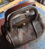 Belonging to a client in Sheffield, I fitted a replacement handle to this old handbag. Unfortunatly the majority of the leather was so rotten that it could not possibly be recovered.